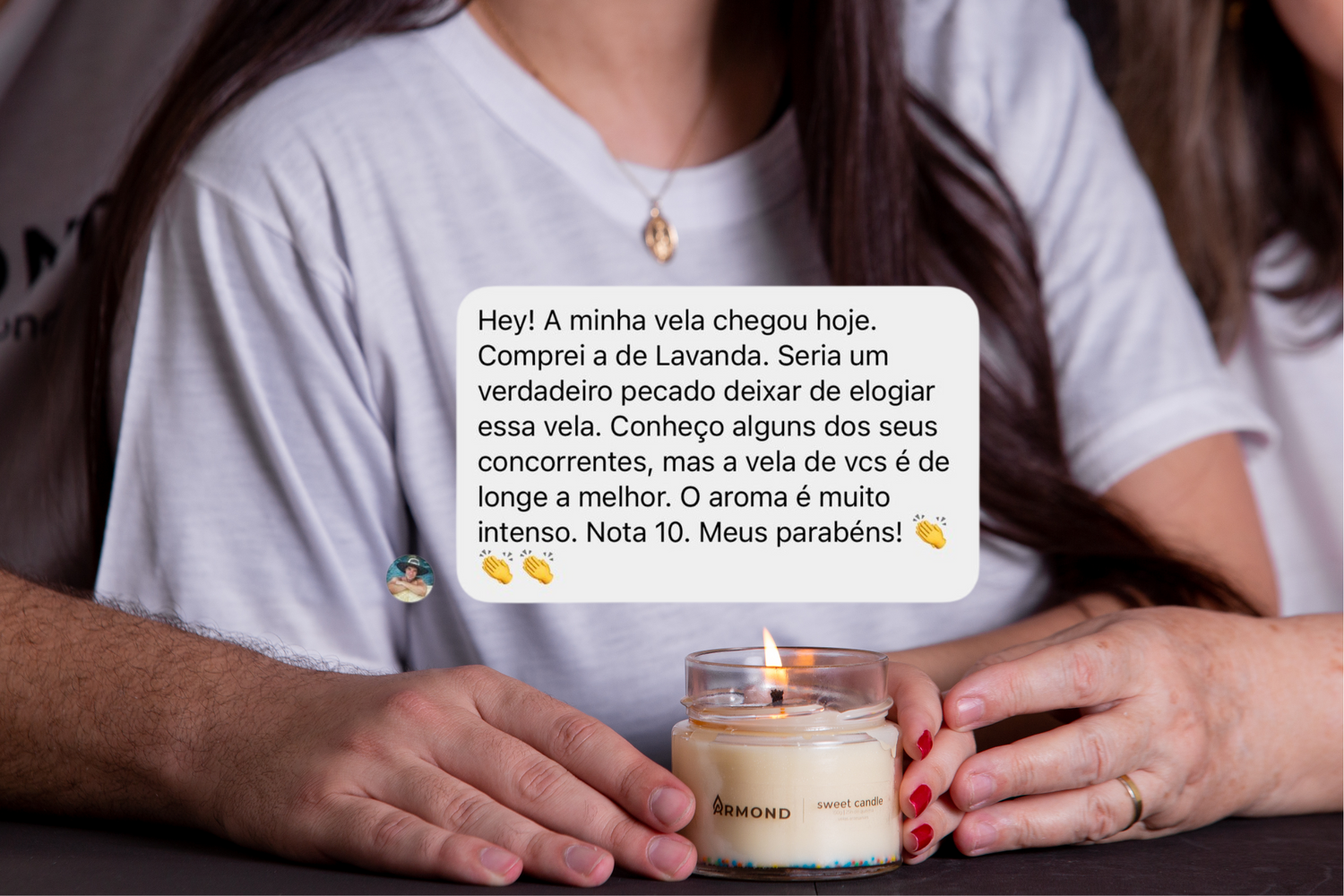 "Acendi a de alecrim e o cheiro é incrível. Amei, de verdade. Do cuidado com a embalagem ao bilhetinho escrito à mão! Quanto amor."