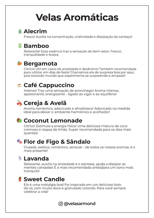 Trabalhamos com Velas Aromáticas, Home Sprays, Difusores de Ambiente, Personalizados, Empresariais e Kits Presentes, usando as melhores matérias-primas do mercado.
